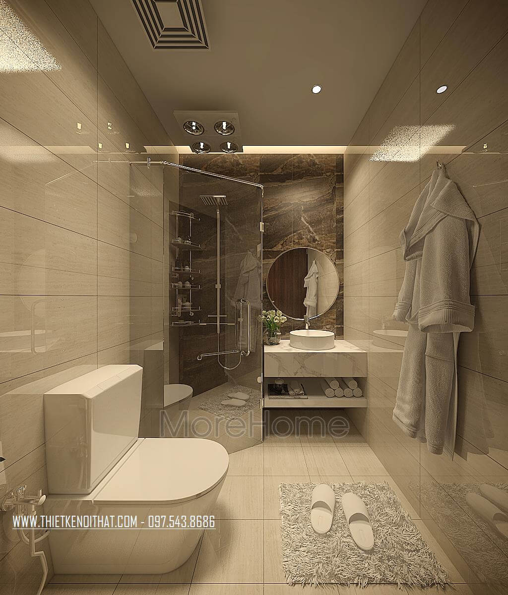 Đá nhân tạo ốp bàn lavabo chung cư Trung Hòa Nhân Chính. Phòng tắm, nhà vệ sinh được thiết kế thi công với vật liệu xây dựng chủ yêu là đá nhân tạo nội thất bao gồm: đá ốp tường phòng tắm, nhà vệ sinh; đá ốp sàn phòng vệ sinh, nhà tắm.