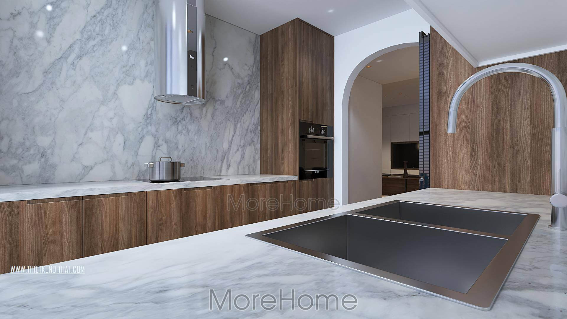 Hạng mục thi công: Ốp bếp, ốp mặt bàn bếp, ốp bàn đảo bếp