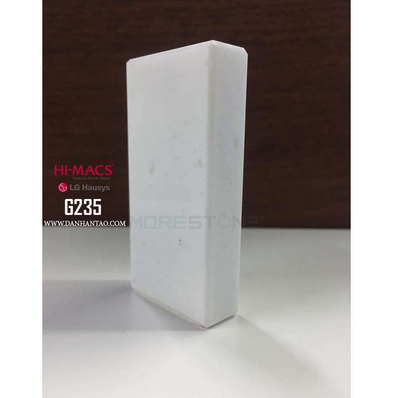 Đá nhân tạo màu trắng G235 này nằm trong bộ sưu tập đá nhân tạo granite của hi – macs. Sản phẩm được sử dụng trong hầu hết các ứng dụng: đá bàn bếp, mặt bàn đá ăn, đá ốp tường, mặt bàn phòng khách, lavabo,… Vẻ đẹp tinh tế của đá Hi macs giúp hoàn thiện không gian mà khó có sản phẩm thi công đạt được hiệu quả này.