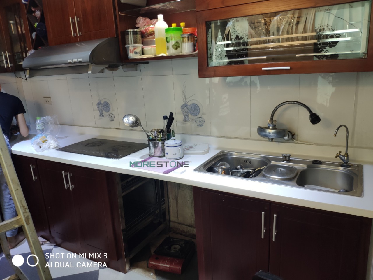 Công trình thi công thực tế, Thi công đá nhân tạo solid surface, Đá ốp bàn đảo, Đá ốp bếp