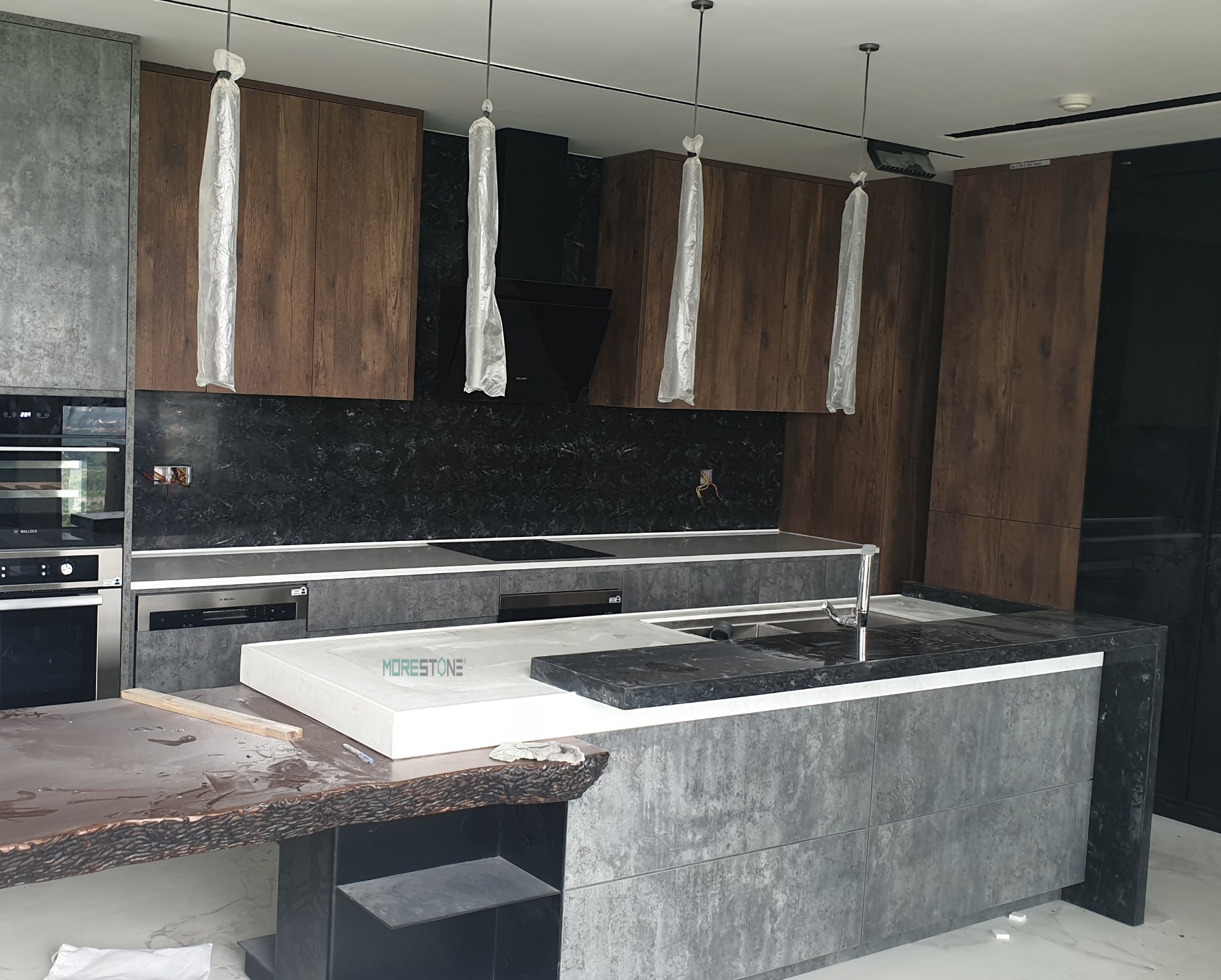Công trình thi công thực tế, Thi công đá nhân tạo solid surface, Đá ốp bàn đảo, Đá ốp bếp, Đá ốp quầy bar