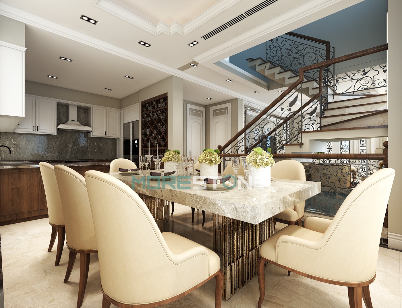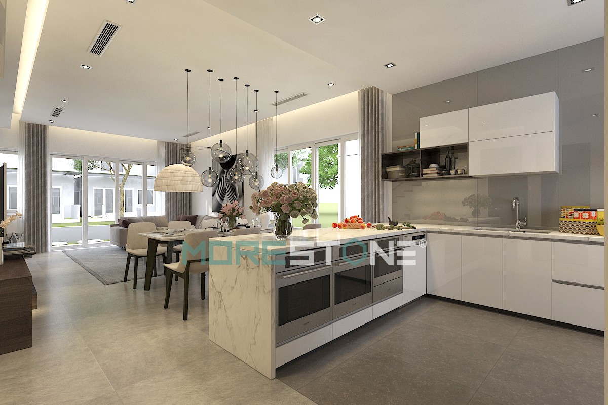 Bàn ăn mặt đá cho nhà bếp biệt thự hiện đại