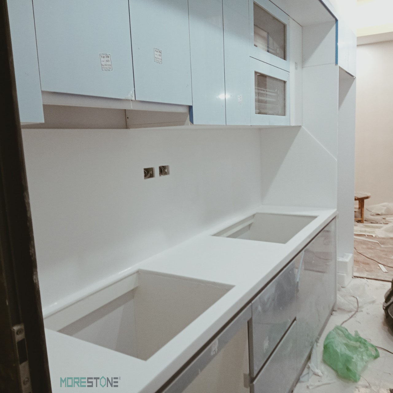 Công trình thi công thực tế, Thi công đá nhân tạo solid surface, Đá ốp bếp
