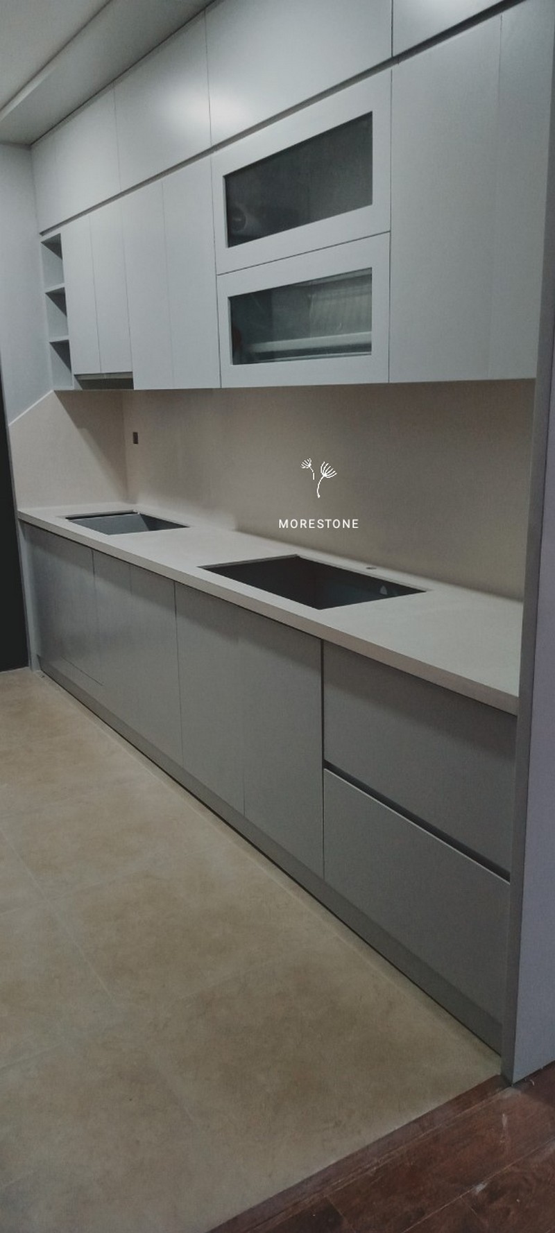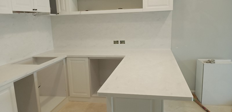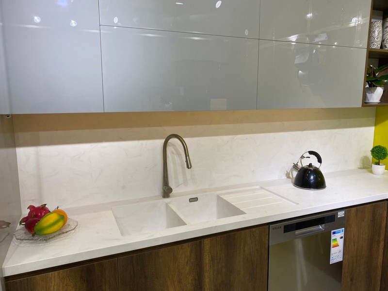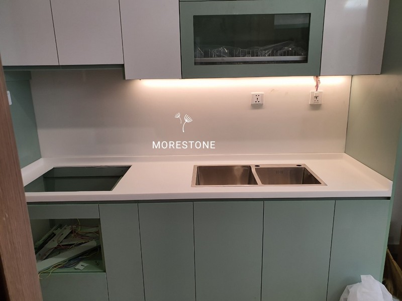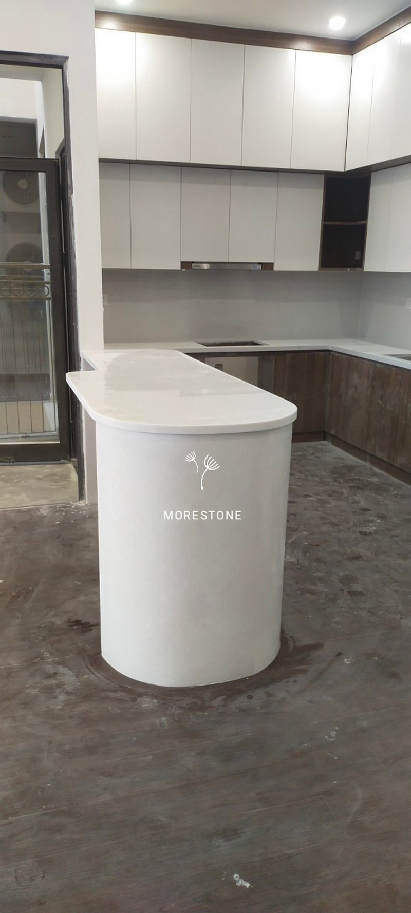Mẫu đá bếp màu trắng cho không gian phòng bếp chống ngấm ố