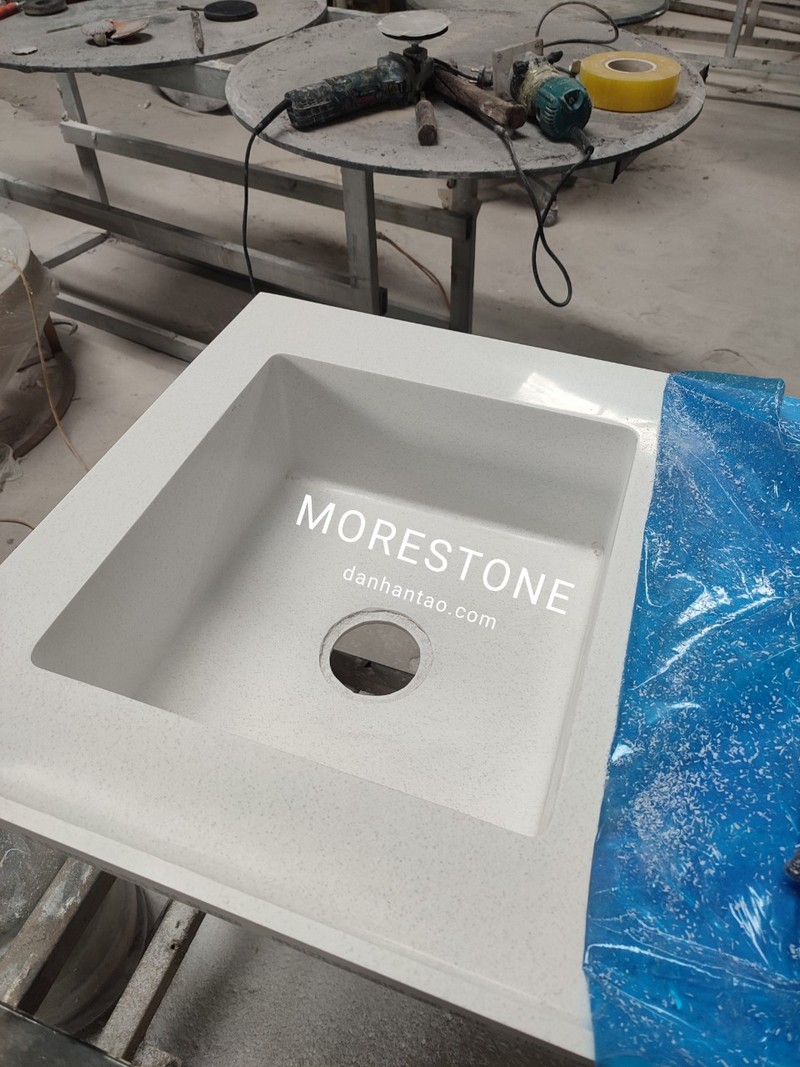 Đặc biệt, đá solid surface có thể làm chậu đá liền khối mang lại vẻ đẹp đồng bồ, hiện đại.