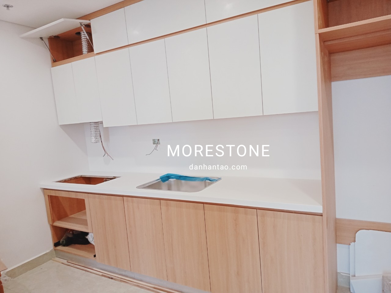 Thi công đá bếp chống ngấm ố màu trắng cho chung cư tại Hải Phòng