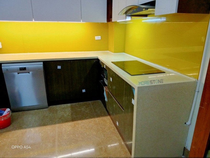 Đá bếp màu vàng luôn được Gia chủ mệnh Kim lựa chọn cho căn bếp của mình. Vừa tạo không gian sáng sủa tạo điểm nhấn, vừa phù hợp với phong thủy.