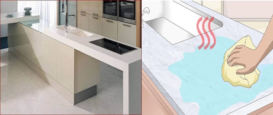 - Do đặc điểm đá HIMACS khả năng chống thấm hoàn toàn,dễ dàng vệ sinh thì với những vết bẩn thông thường chỉ cần sử dụng khăn mềm hoặc miếng xốp vệ sinh, đồng thời kết hợp với các dung dịch có chất tẩy nhẹ để đạt kết quả tốt nhất.