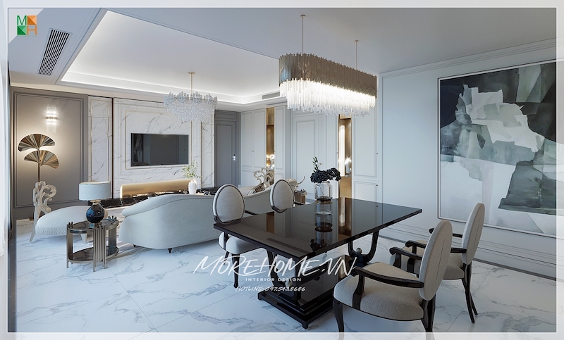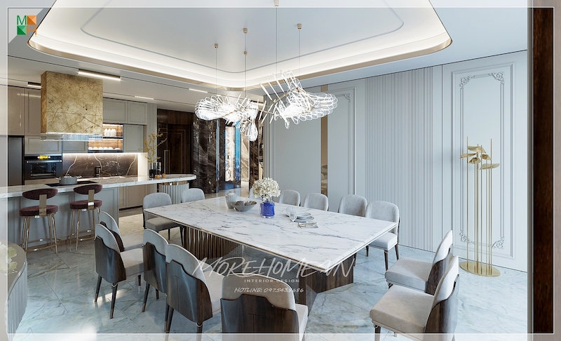 Sang trọng và đẳng cấp: Bàn ăn chất liệu đá mang lại vẻ đẹp sang trọng, đẳng cấp và tạo điểm nhấn nổi bật cho không gian phòng ăn.