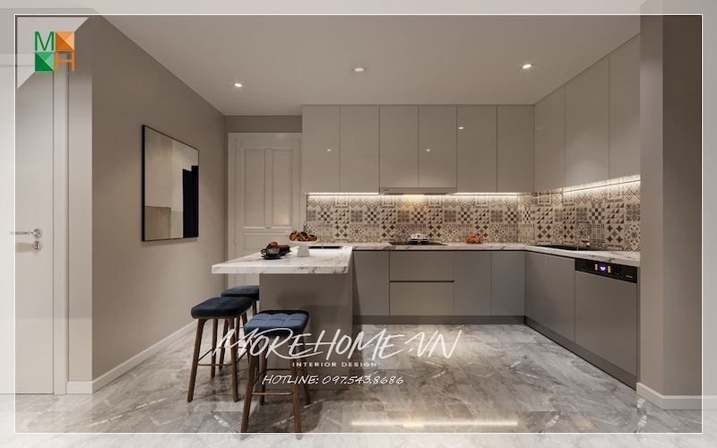 Tủ bếp được thiết kế mang phong cách hiện đại