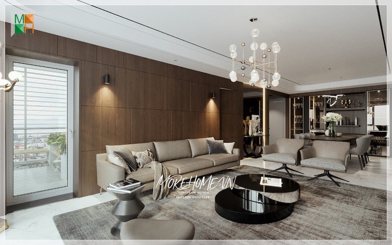 Sự kết hợp tài tình giữa bàn trà và bộ sofa giúp phòng khách nổi bật hơn