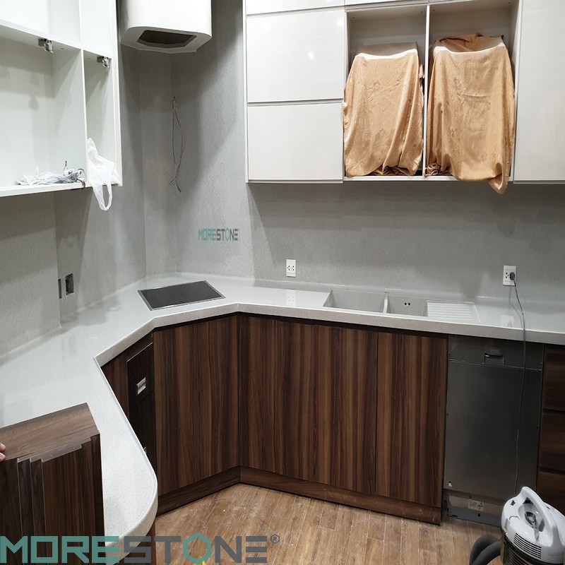 Riêng với đá bếp, với nhiều năm kinh nghiệm và là chuyên gia trong nghề, Morestone khuyên bạn nên lựa chọn các dòng đá nhân tạo chất lượng, với công nghệ sản xuất bề mặt chống ngấm ố hiện tại, đảm bảo chất lượng của sản phẩm.