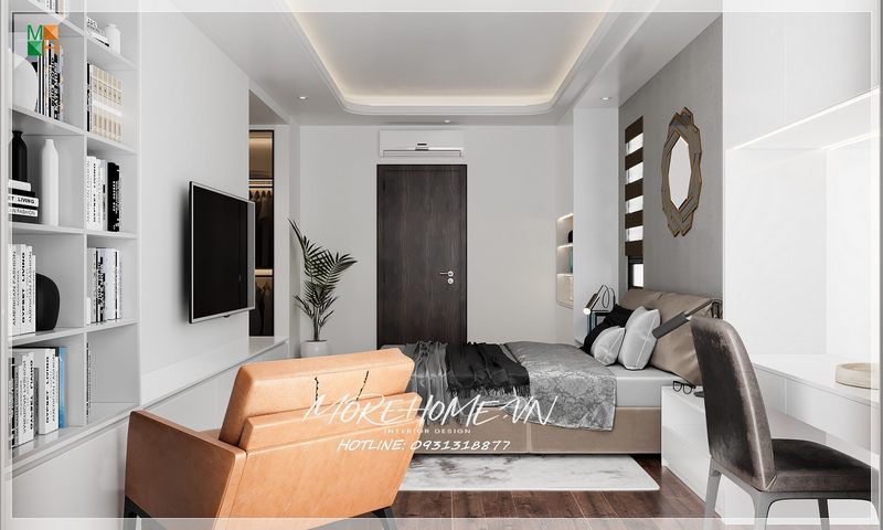 Mẫu cửa gỗ tự nhiên mang lại cho phòng ngủ một cánh hiện đại và sang trọng.