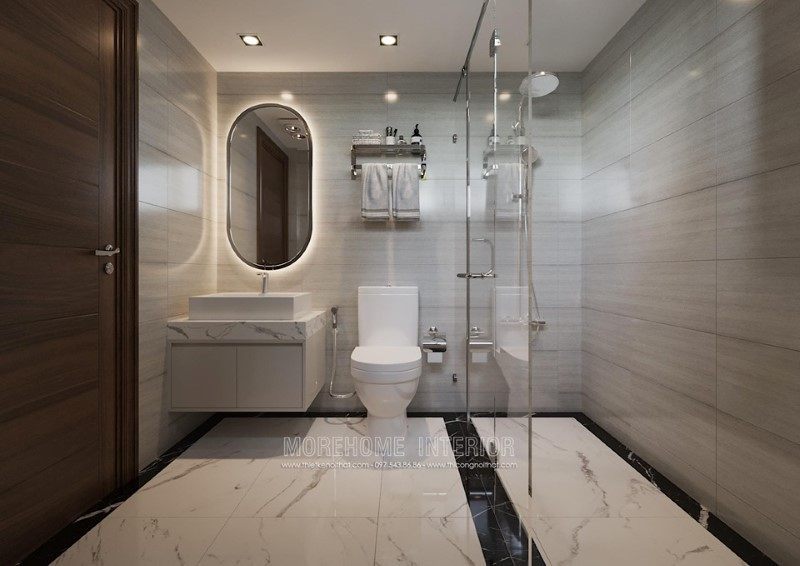 Thiết kế phòng tắm nội thất hiện đại, đầy đủ tiện nghi, giúp người dùng thoải mái trong việc sử dụng hàng ngày và có tính thẩm mỹ cao.