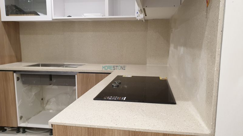 Đá ốp mặt bếp nhân tạo được coi là một yếu tố quan trọng để tạo nên ấn tượng trong không gian nhà bếp chung cư. Nó không chỉ nâng cao độ thẩm mỹ của nội thất mà còn giúp cho việc dọn dẹp và lau chùi trở nên nhanh chóng và sạch sẽ hơn.